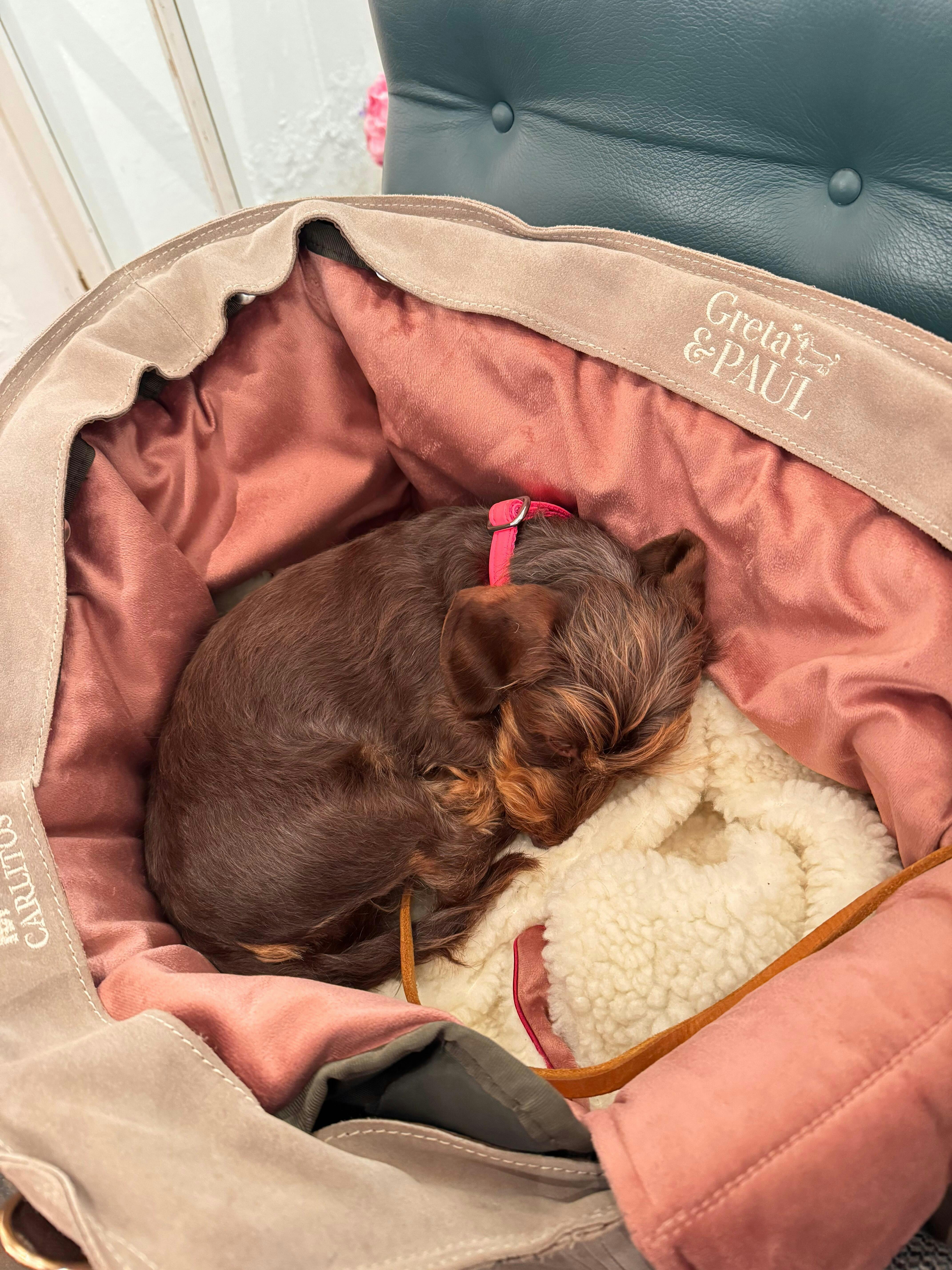 Ich bin Julia, und "Greta & PAUL" ist für mich eine absolute Herzensangelegenheit. Unsere Produkte sollen nicht nur die Herzen kleiner und etwas größerer Hunde höherschlagen lassen, sondern auch uns Hundehalter glücklich machen. Gemeinsam mit unserem engagierten Team und der Unterstützung unserer Community haben wir eine Gemeinschaft aufgebaut, die unsere Werte teilt und unsere Vision lebt. Vom persönlichen Austausch bis zum Reparaturservice im Rahmen unseres „Täschchen-Treatment-Services“ bieten wir unseren Kunden und ihren Vierbeinern umfassenden Service auf höchstem Niveau.