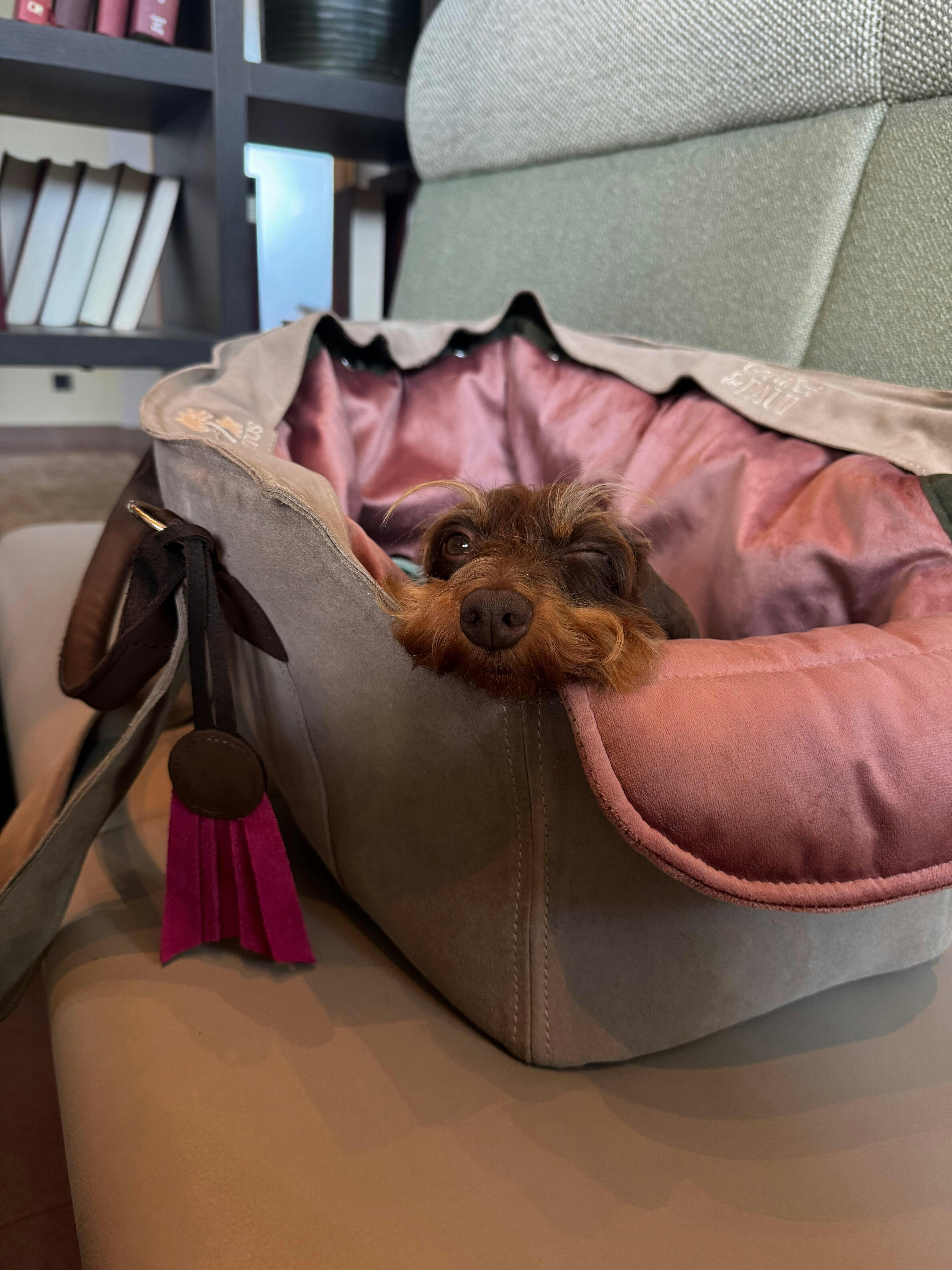 Finde die perfekte Grundlage für deine individuelle Hundetasche. Ob Gretas Premium Hundetasche, die Reise- und Transporttasche mit Netz, die geräumige Premium XL-Tasche, unsere Luxus Wildledertasche oder die elegante Luxus Lodentasche– entscheide ganz nach deinem Stil und Bedarf.