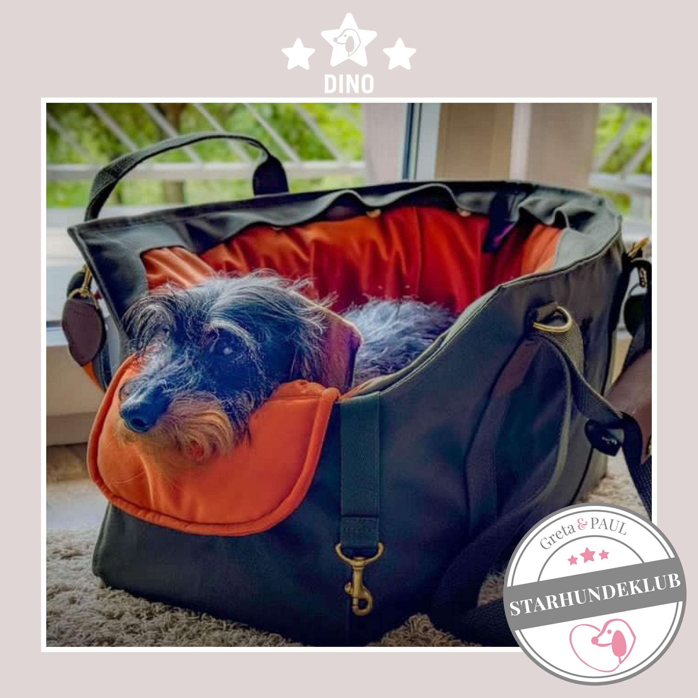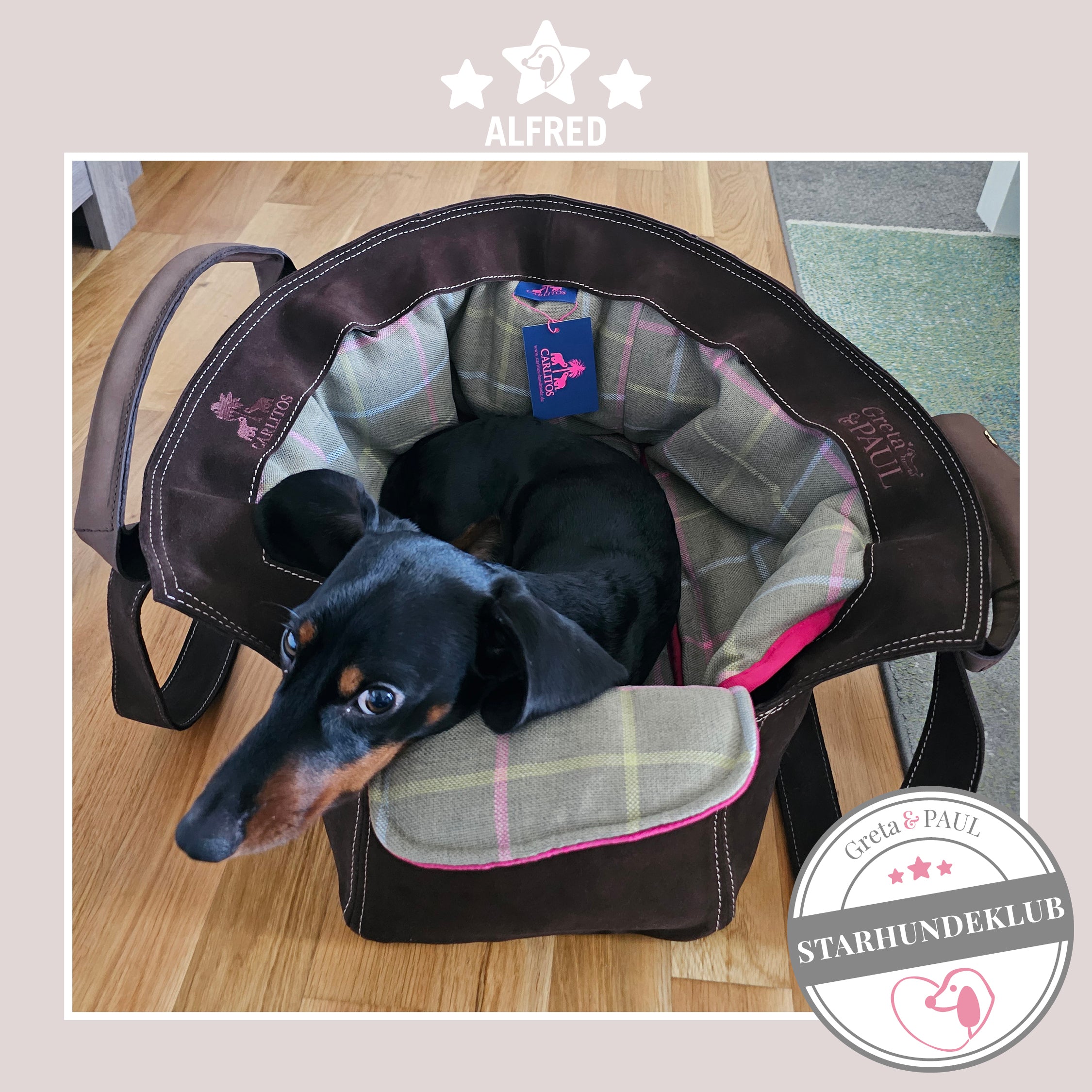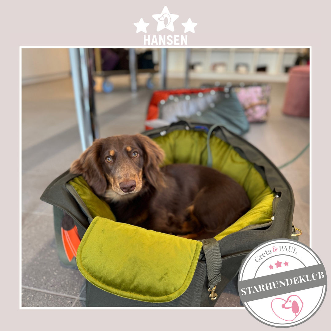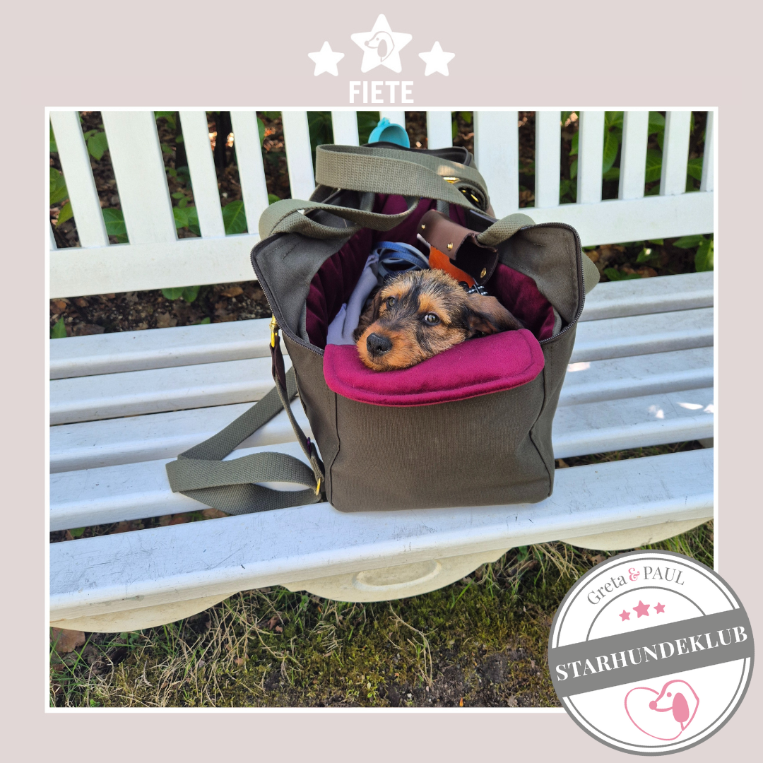 Neben dem sehr netten Telefonkontakt, der superschnellen und liebevoll verpackten Lieferung, ist Gretas (Fritzis) Täschchen wirklich die best durchdachte Hundetasche, die es gibt. Fritz ist Standarddackel -sehr lang und wiegt 7 kg. Die vielen Gestaltungsmöglichkeiten sind einfach unschlagbar und der Gemütlichkeitsfaktor wurde von Fritz gleich bestätigt. Nach dem Auspacken ist er sofort in die Tasche eingezogen und hat sich häuslich eingerichtet ;-). Ich überlege jetzt schon, welches Inlay wir als Nächstes brauchen. Es werden bestimmt noch sehr viel mehr Produkte von Greta & PAUL bei uns einziehen.