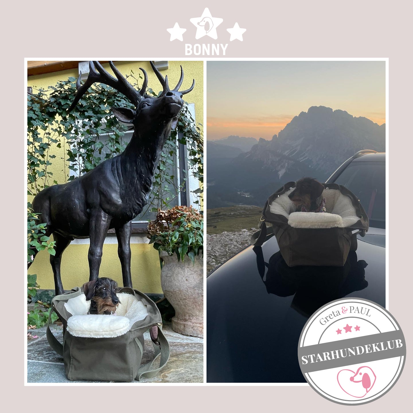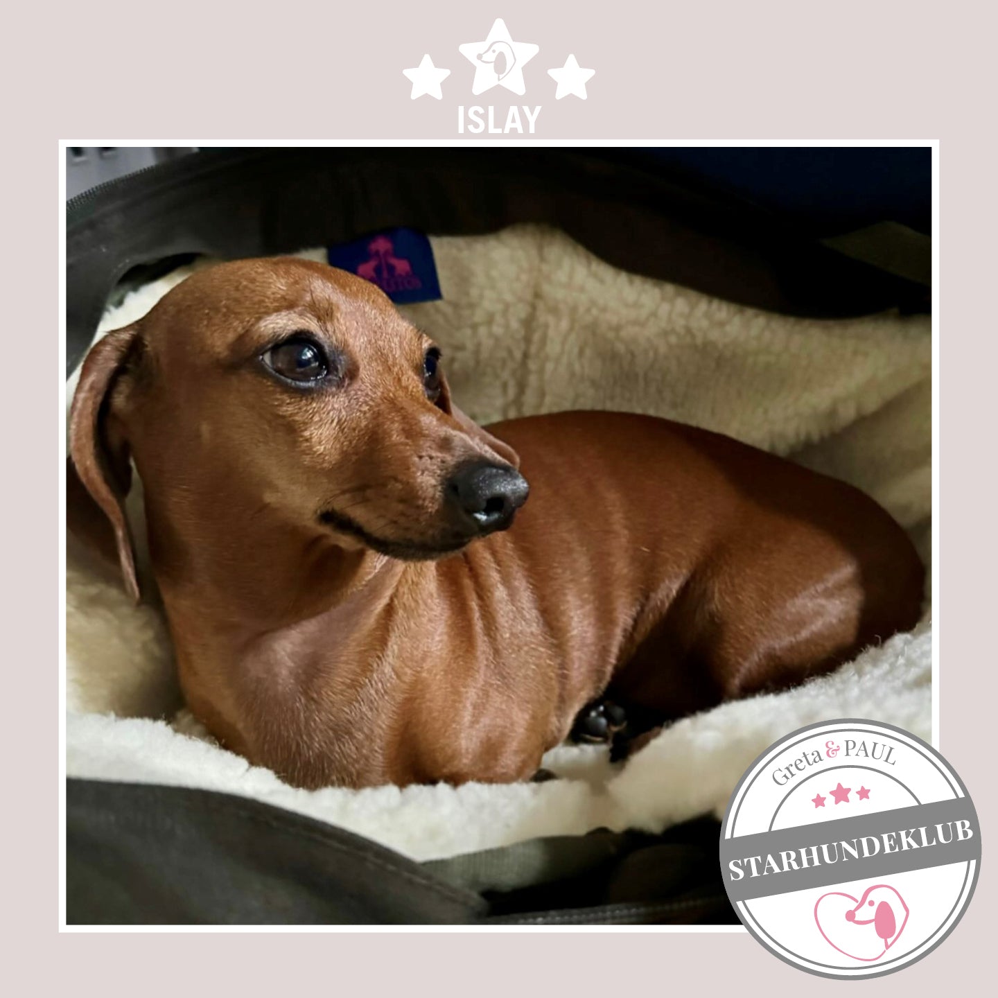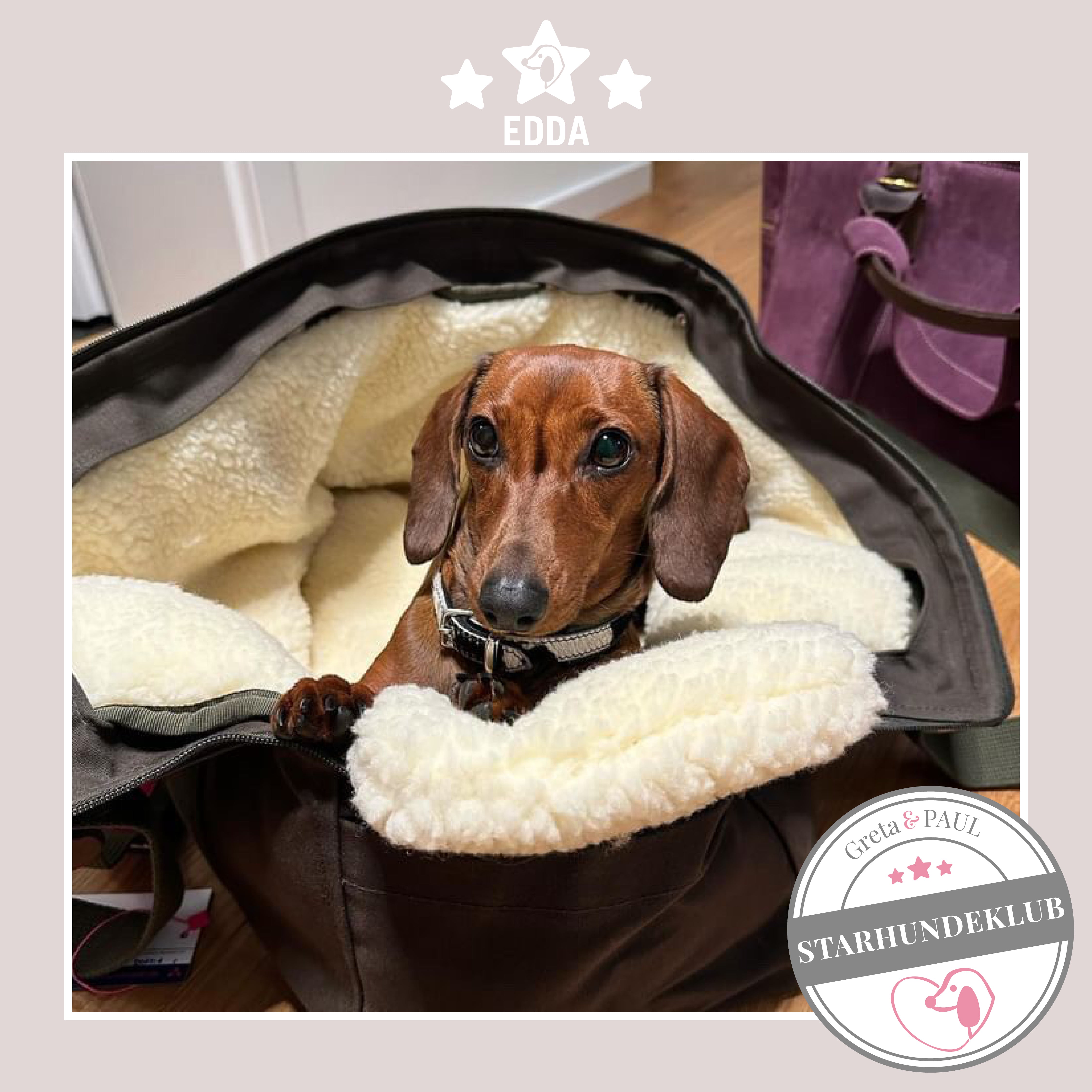 Neben dem sehr netten Telefonkontakt, der superschnellen und liebevoll verpackten Lieferung, ist Gretas (Fritzis) Täschchen wirklich die best durchdachte Hundetasche, die es gibt. Fritz ist Standarddackel -sehr lang und wiegt 7 kg. Die vielen Gestaltungsmöglichkeiten sind einfach unschlagbar und der Gemütlichkeitsfaktor wurde von Fritz gleich bestätigt. Nach dem Auspacken ist er sofort in die Tasche eingezogen und hat sich häuslich eingerichtet ;-). Ich überlege jetzt schon, welches Inlay wir als Nächstes brauchen. Es werden bestimmt noch sehr viel mehr Produkte von Greta & PAUL bei uns einziehen.
