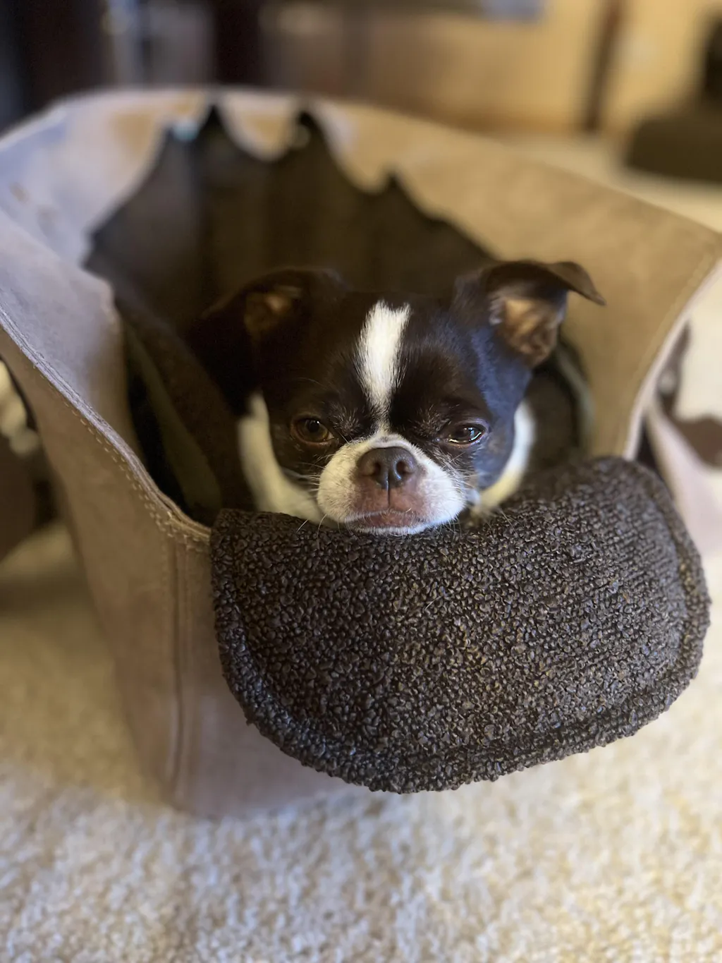 Ganz grosse Täschchenliebe! Kaum ausgepackt und hingestellt da wurde sie auch schon in Beschlag genommen. Der Hund liebt das Teddyinlay und ich die durchdachte Aufteilung, die verschiedenen Tragemöglichkeiten und den schönen Beigeton. Grosse Empfehlung für jeden Kleinhundebesitzer- auch die von nicht-dackeligen :)