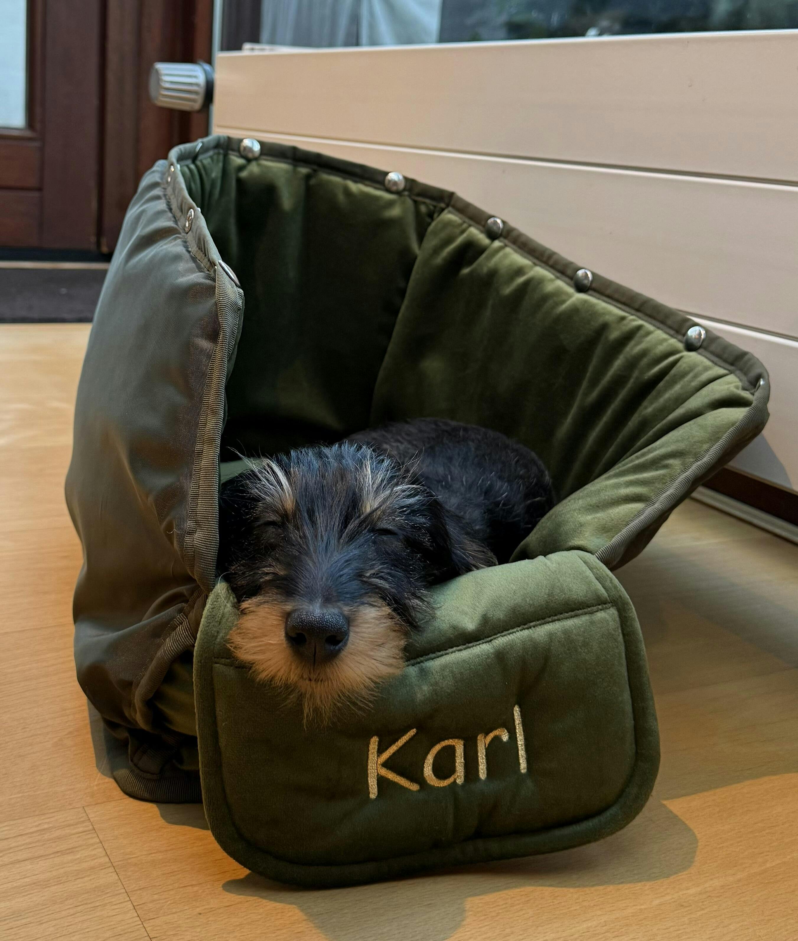 Lucy (8 jährige Langhaar Dackeldame) hat sich sehr schnell an den Luxus gewöhnt, getragen und noch mehr bewundert zu werden.